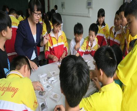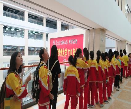 活动分为两天举行,9月13日下午暑期社会实践团队带领贵大附中初二年级的134名中学生参观了贵州大学西校区图书馆和资环学院实验室(127岩石土工实验室、129岩石制样室、130岩石压力实验室、219古生物标本实验室、229岩石标本实验室)。