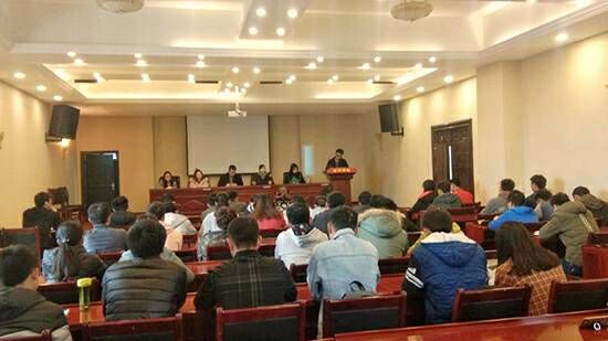 (资环新闻网讯新闻中心支升福|摄影 赵腾) 3月6日中午,资环学院2018年春季学期第一次全体学生干部大会在资环楼436报告厅召开,学院党委副书记徐进,学生科负责人刘红迎、团委书记曹贞贞,学生科陈成、漆晗老师以及学院全体学生干部参加。会议由学生会主席卢鸿主持。