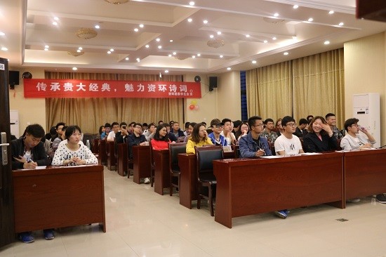 (贵大资环网讯新闻中心张忠美郭华林报道/ 摄影 阳磊 赵腾)为贯彻“传承中华文化·魅力资环诗词”的活动宗旨,2018年4月10号晚,筹备已久的“诗词大会”初赛分别于我院资环楼521教室、学术报告厅436如期举行。两个比赛场地各有11组队伍队参加比赛,随着时间的推移赛况日趋白热化,参赛队员们热情逐渐高涨,均欲把冠军收入囊中。