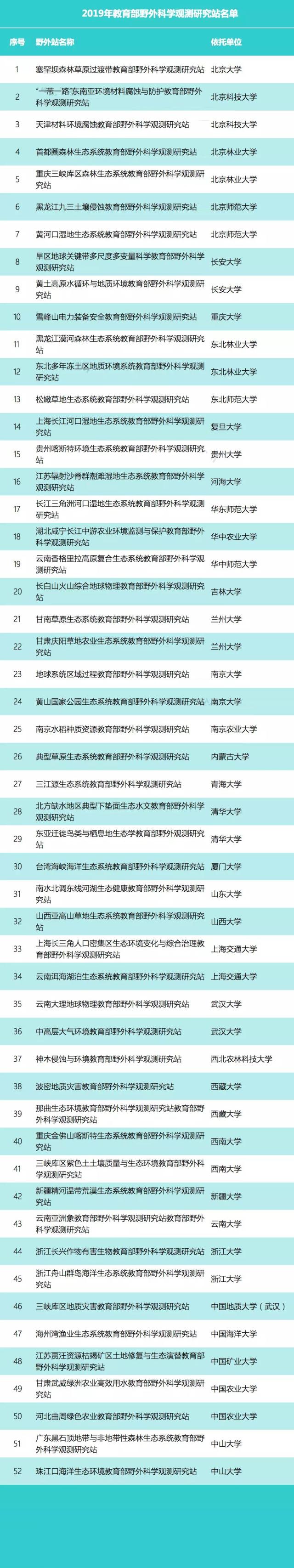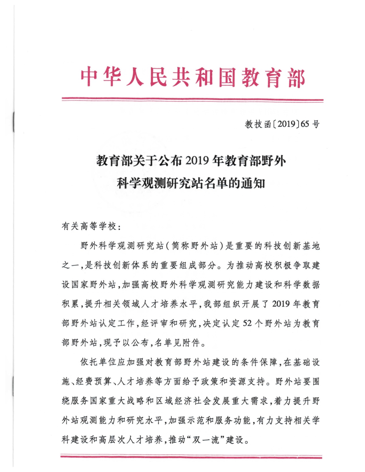 教育部关于公布2019年教育部野外科学观测研究站名单的通知见http://www.moe.gov.cn/srcsite/A16/s7062/201909/t20190930_401836.html