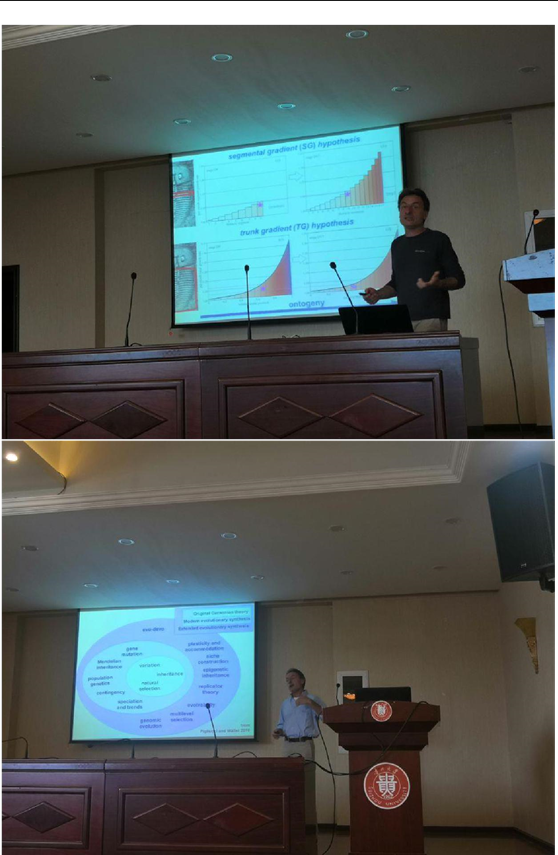 2019523日和28日,“黔岩”学术讲坛贵州大学第五期(第一场)在贵州大学资环学院436报告厅进行,报告题目分别为:Getting blood out of stones 1Fossil on to genies inevolutionary developmental biology(evo-devo)和Getting blood out of stones 2Trilobite development insightsinto arthropod evolution,报告人帕瓦多大学Giuseppe Fusco教授,长期从事演化生物学及发育生物学研究。其研究内容包括节肢动物的形态演化和胚后发育;生物演化变异中的发育约束;表型可塑性、表型鲁棒性等;生物演化动态的数学建模。