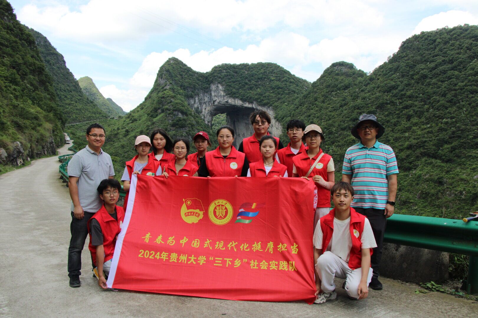 贵州大学地球科学系蒋玺教授和陈世万副教授指导实践队在牛蹄关村开展地质资源调查和地质研学特色线路挖掘。实践队对大圣之眼、飞龙谷、天门桥等独特喀斯特地貌现象开展地质考察,分析各类喀斯特地貌形成的过程,研讨面向大众的地学科普形式,打造特色地学研学路线。