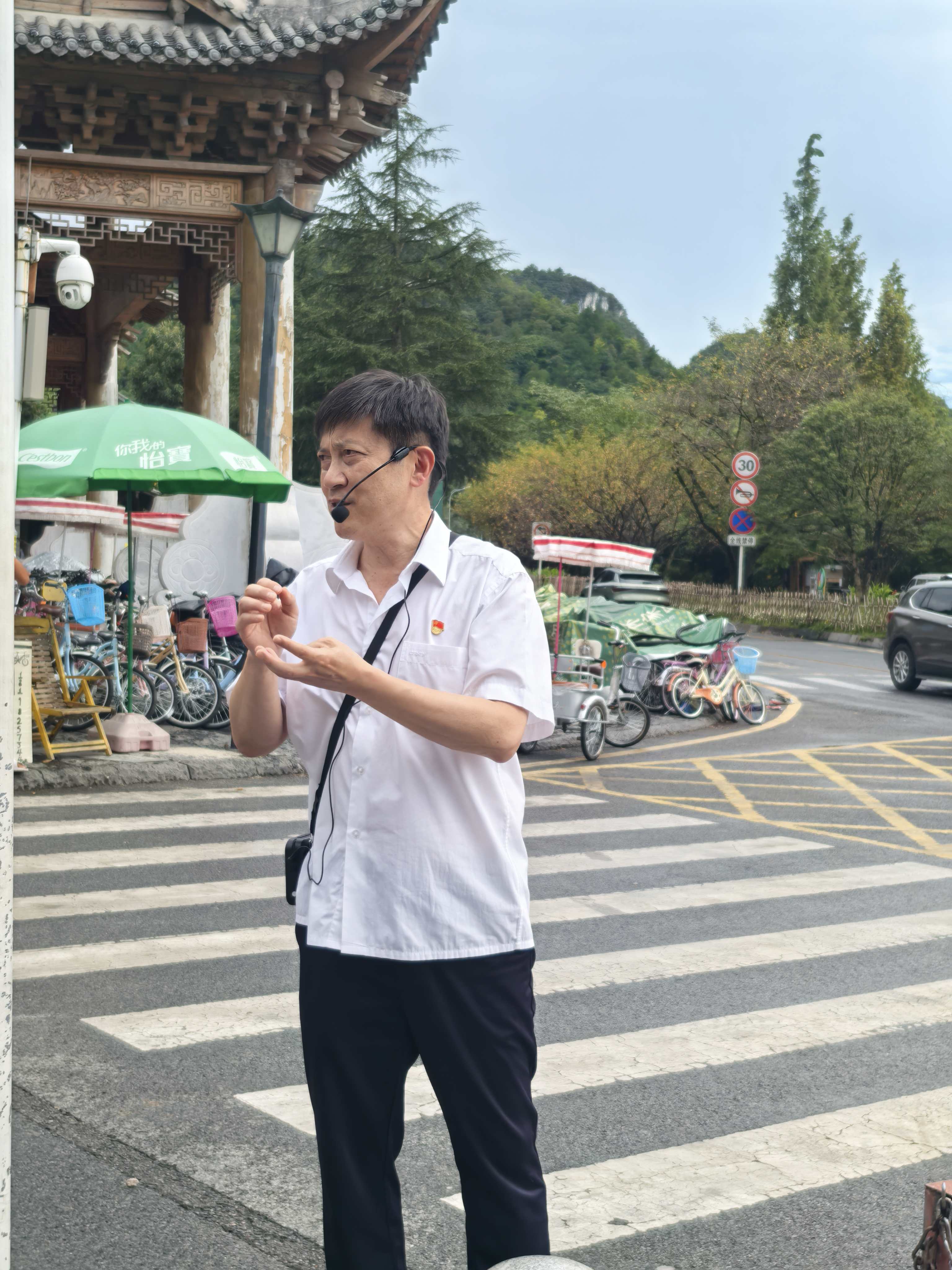 图书馆党总支书记周长峰担任主讲解员,沿着孔学堂经典线路,从大成殿讲到百廉图,以典籍史料串联建筑、典故与孔子生平等,通过拆解御匾上的题字寓意、雕塑中的细节符号、汉字的起源演变等,让静态的文化场景“活”了起来。在廉洁文化长廊里,他结合中华传统文化中的廉洁基因,带领大家回顾了党的十八大以来贯彻落实中央八项规定精神的生动实践,让在场师生深刻感受到“廉洁”既是千年传承的文化底色,更是新时代党员干部的行动准则。